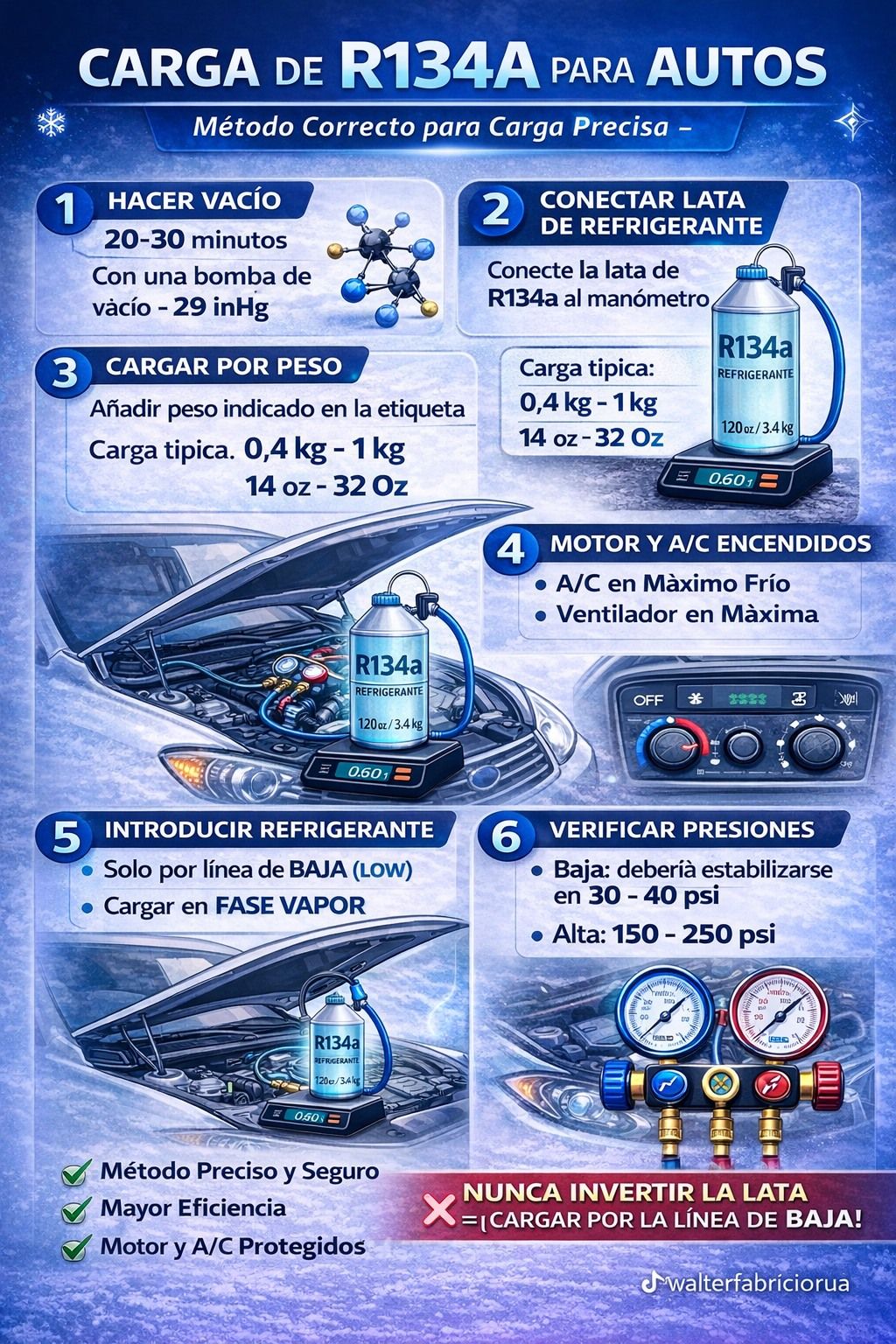 El R134a no se consume ni se gasta con el uso. Si el sistema deja de enfriar correctamente, existe una alta probabilidad de fuga.